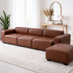 The Induduzo Sofa combines modern design with everyday comfort, creating a versatile centerpiece for any living space. Upholstered in smooth, high-quality leather, it offers a sleek finish while maintaining a warm and inviting feel.